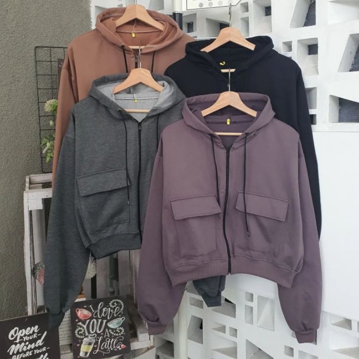 Zaira Crop Hoodie Wanita M L XL