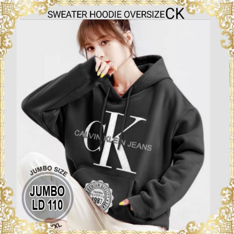 GSL - Sweater Hoodie Wanita Korea Oversize CK Calvin Klein Hitam Ld 110 cm - Sweatshirt Hodie Hoddie Switer sweter Wanita jumbo import korean style xxl tebal murah terbaru